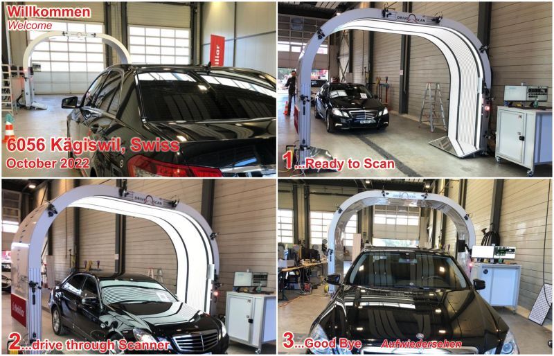 die "DRIVEnSCAN"-Hagelscanner im täglichen Einsatz von morgens bis abends für die Mobiliar Versicherung bei der XpertCenter AG in Lyssach, Schweiz.